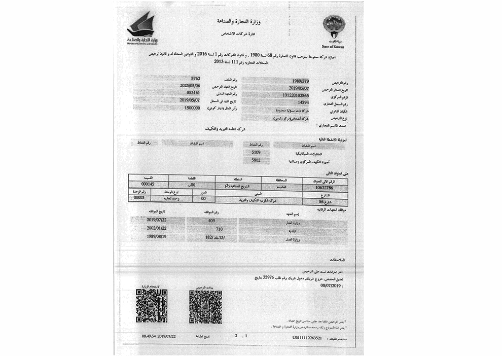 License From Ministry Of Commerce And Industry