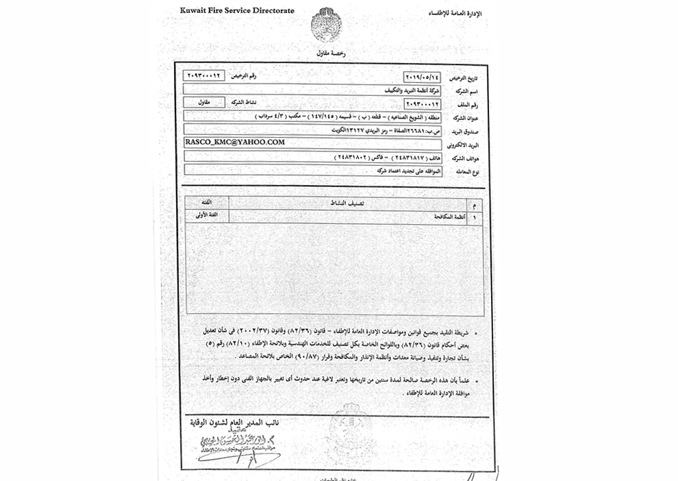 Kuwait Fire Service Direction