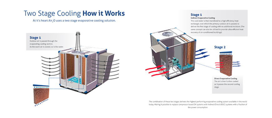 Air 2O is the next generation hybrid air conditioning system, utilizing a unique combination of indirect and direct evaporative cooling to achieve 80% energy saving over DX compressor based systems.